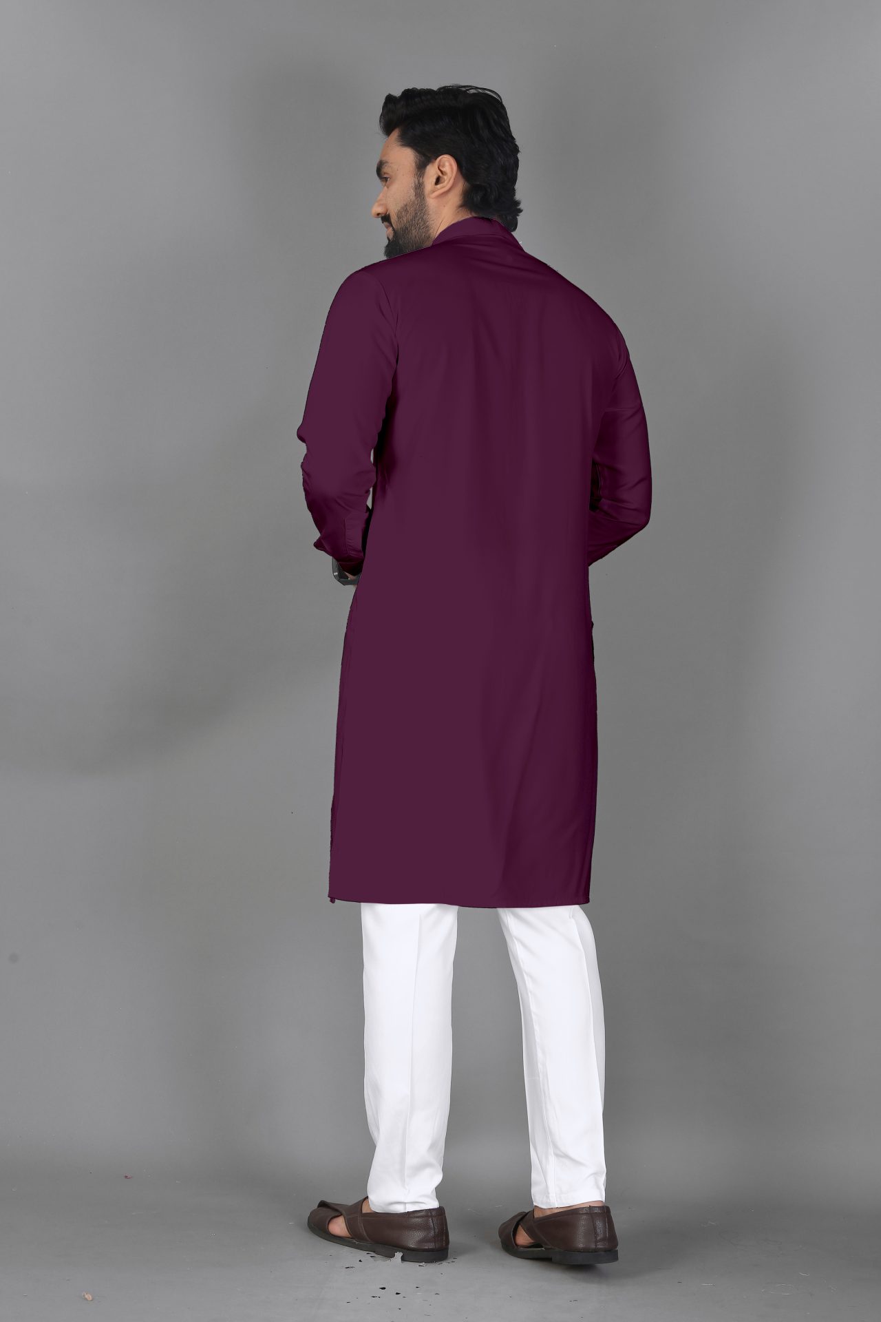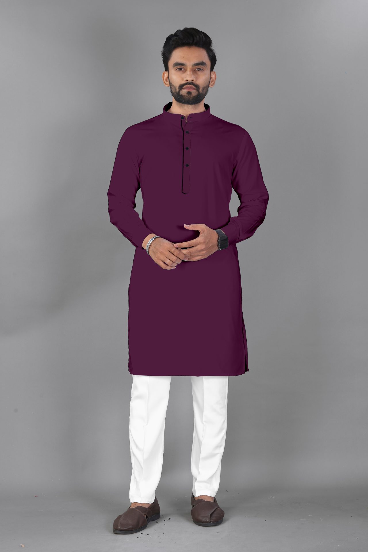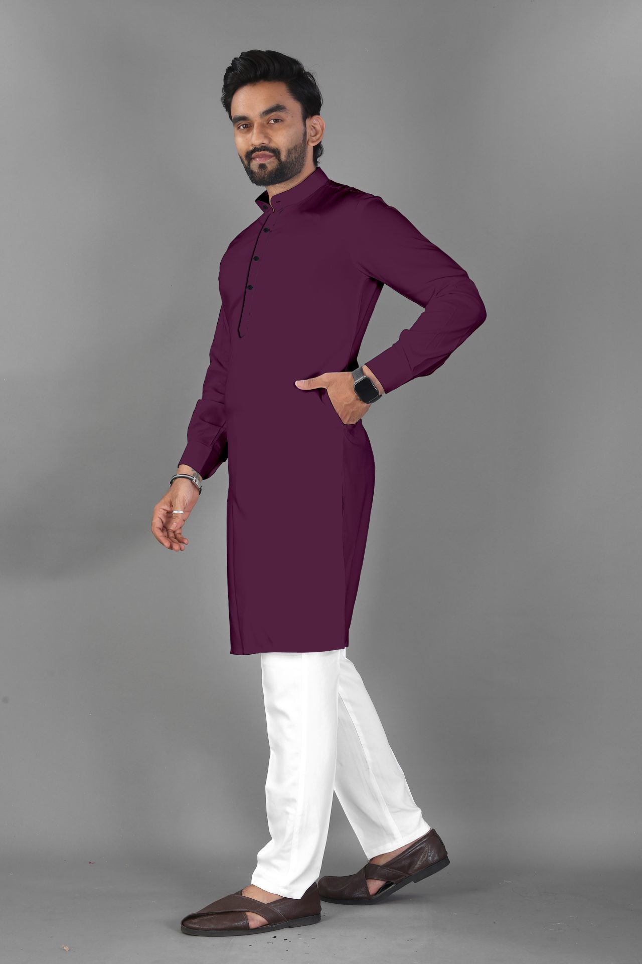 This kurta pajama is designed for refined everyday luxury. The ban collar adds a sharp, modern edge. Meanwhile, the rich purple shade enhances visual depth and confidence. The silhouette feels relaxed yet polished. Consequently, it suits both traditional and modern wardrobes.