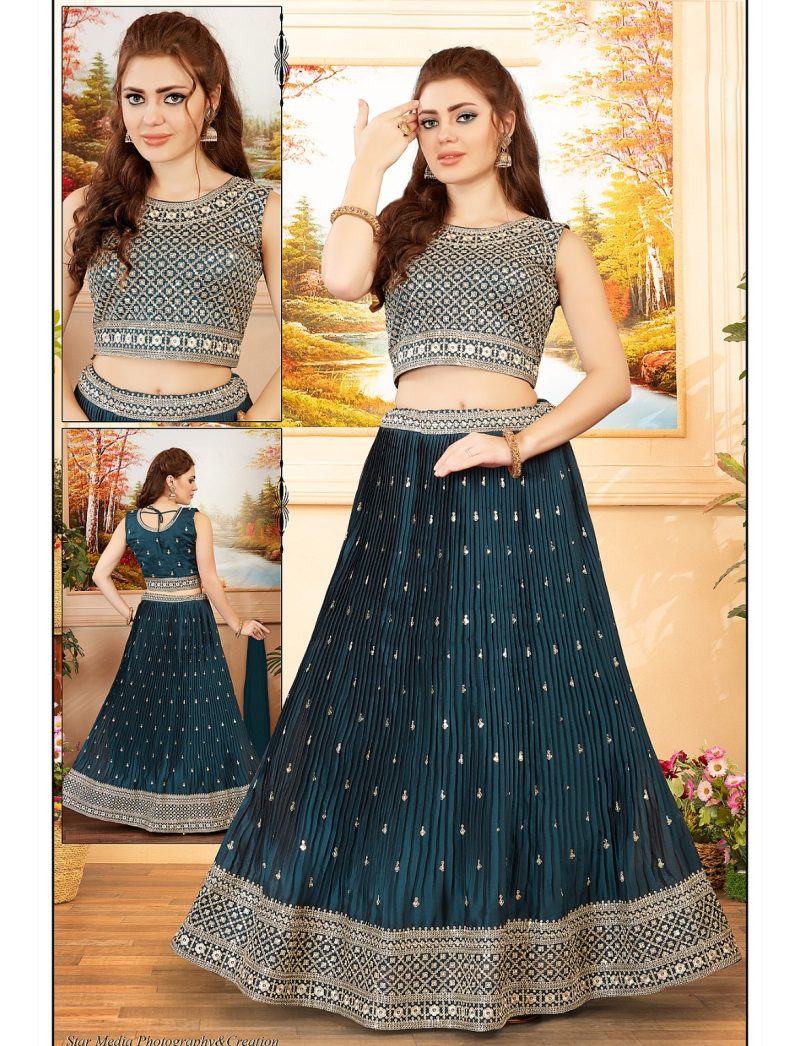 The Blue Embroidered Georgette Lehenga Choli reflects centuries of artistic heritage. Its intricate patterns honour traditional craftsmanship while offering a modern twist. This blend makes the outfit meaningful for celebrations where culture and elegance come together. Moreover, the rich embroidery elevates its aura and adds depth to every occasion.
