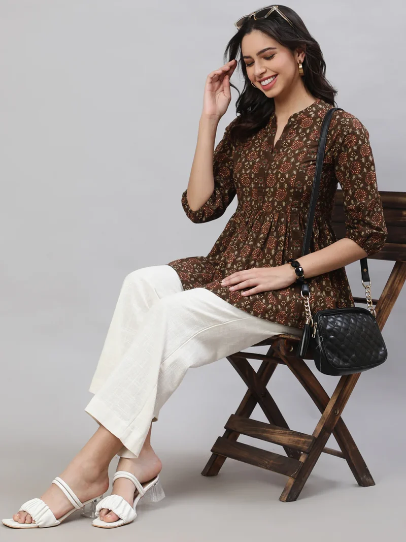 The Brown Short Cotton Top reflects the charm of practical Indian dressing. Earthy brown tones connect with nature and tradition. Moreover, cotton clothing has always represented comfort and modest living. This top therefore blends cultural values with modern needs for easy fashion.