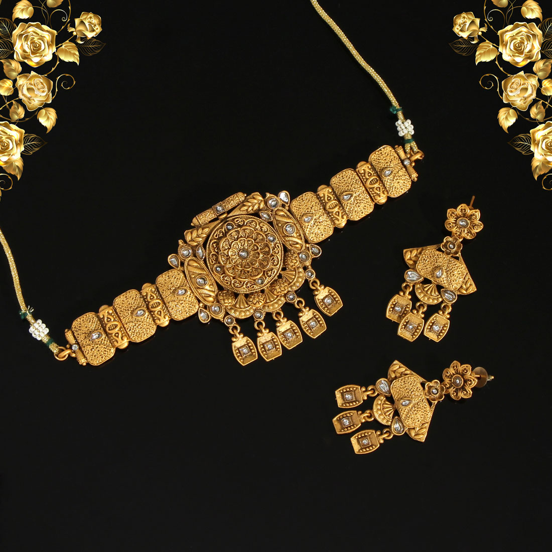 Rajwadi Matte Gold Necklace Set