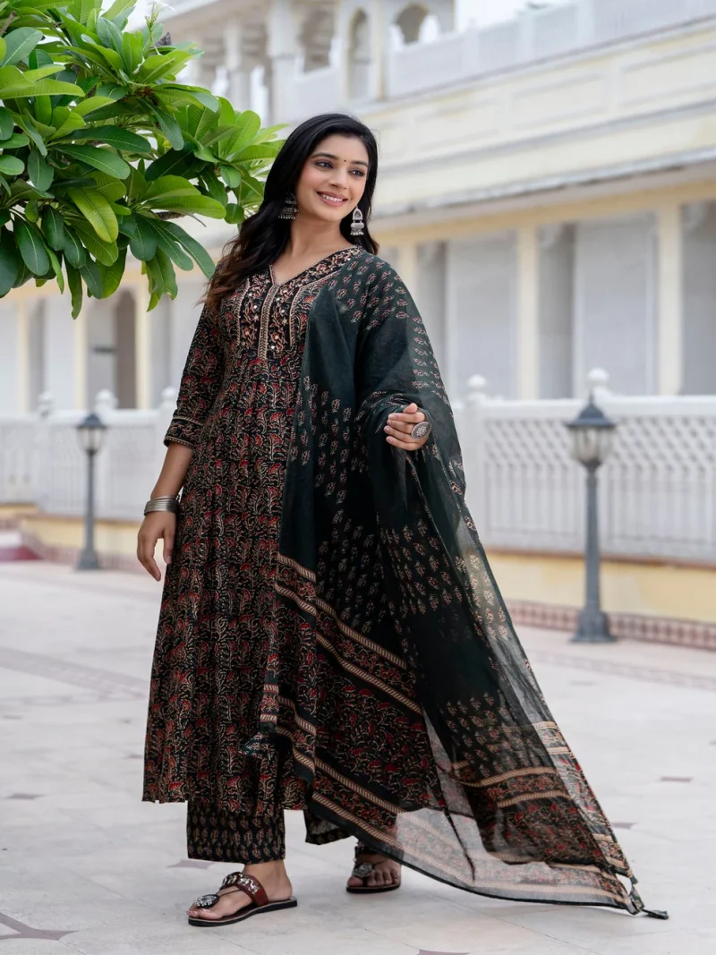 Embroiderd Printed Kurta Bottom Dupatta Set