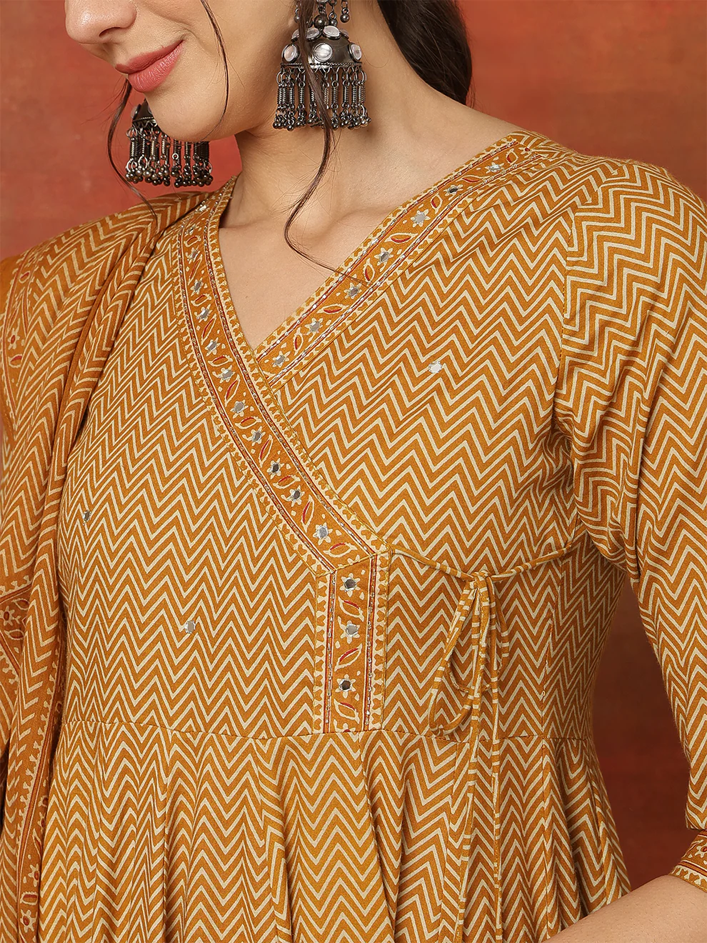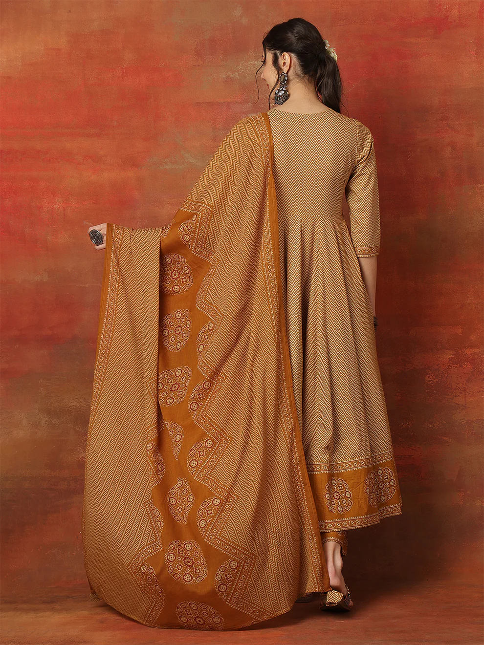 Styling this Anarkali suit enhances its beauty. Consider these fashionable pairing ideas: