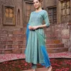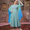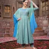 Embroidered Cotton Blend Anarkali Kurta Pant Dupatta Set