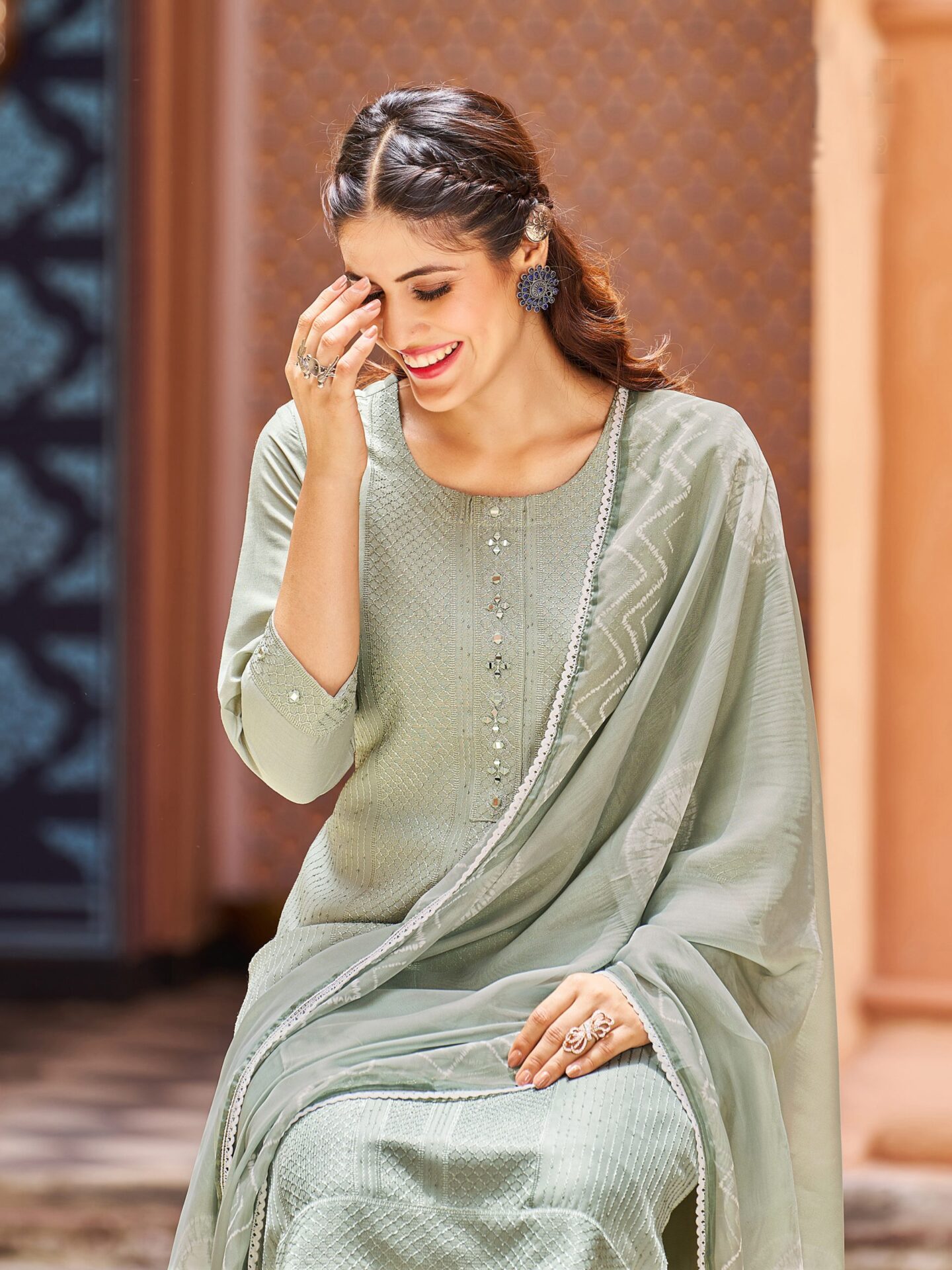 In the realm of fashion, certain garments possess a timeless allure, moreover, seamlessly blending elegance with comfort, The embroidered cotton silk suit stands as a quintessential example, epitomizing sophistication and luxury. From festive celebrations to cherished wedding ceremonies, moreover, this exquisite attire exudes charm and grace. furthermore, Delve into the world of embroidered cotton silk suits, where style meets substance in perfect harmony.Perfect for Festive Occasions: Radiating Elegance and Charm