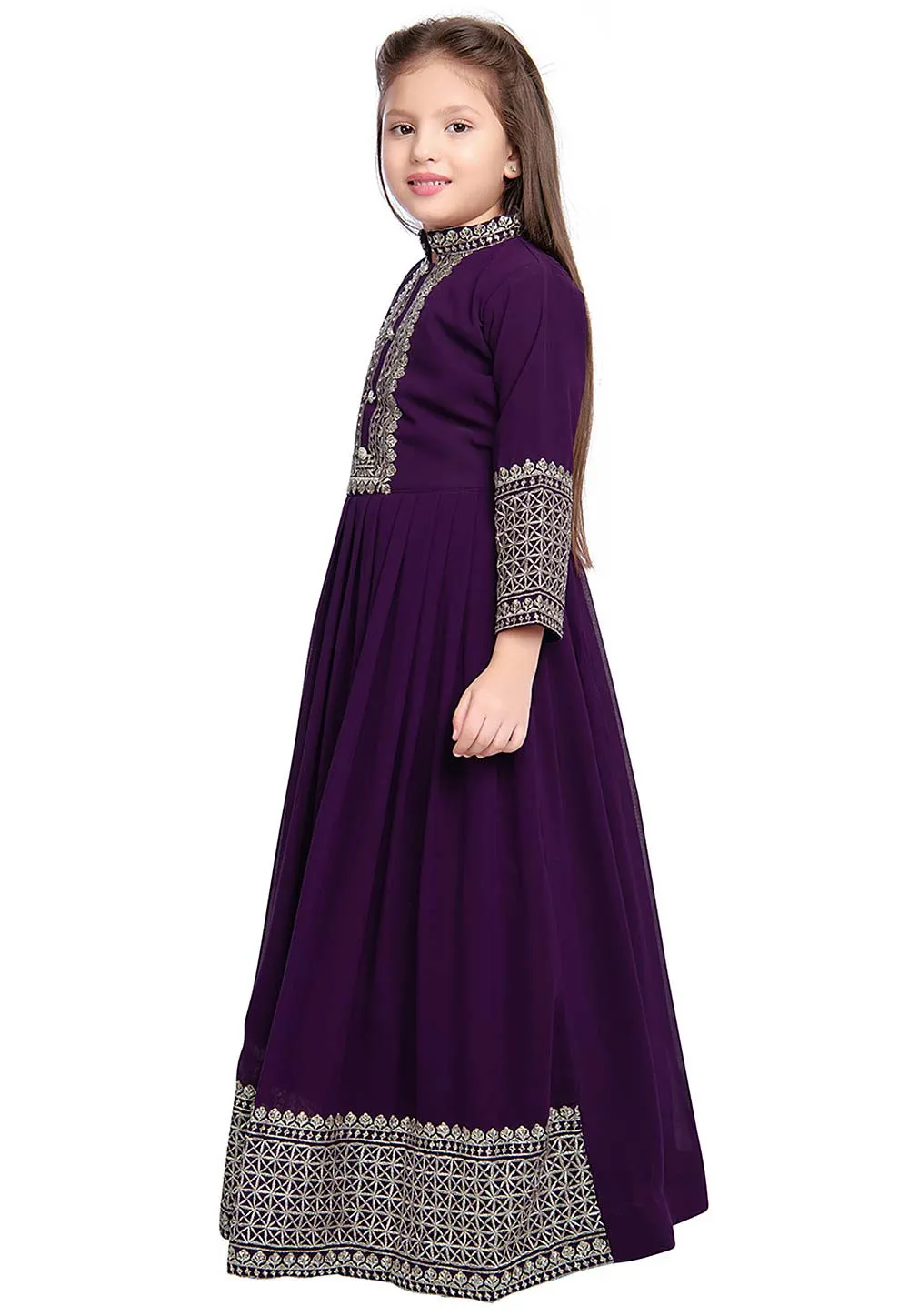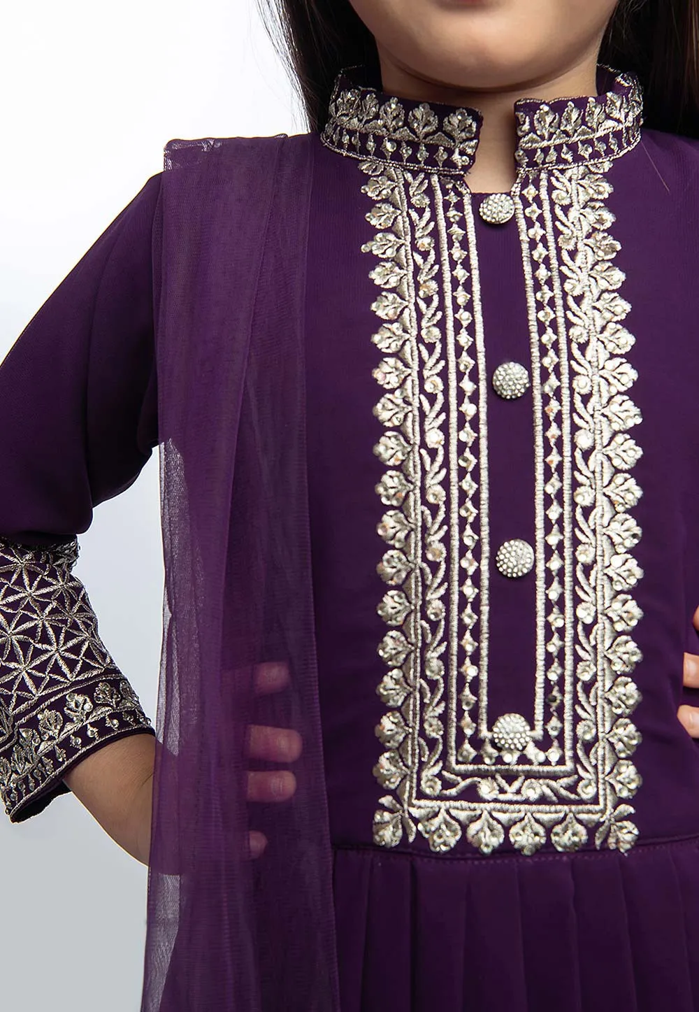 - Available with an Art Silk Leggings in Purple and a Net Dupatta in Purple