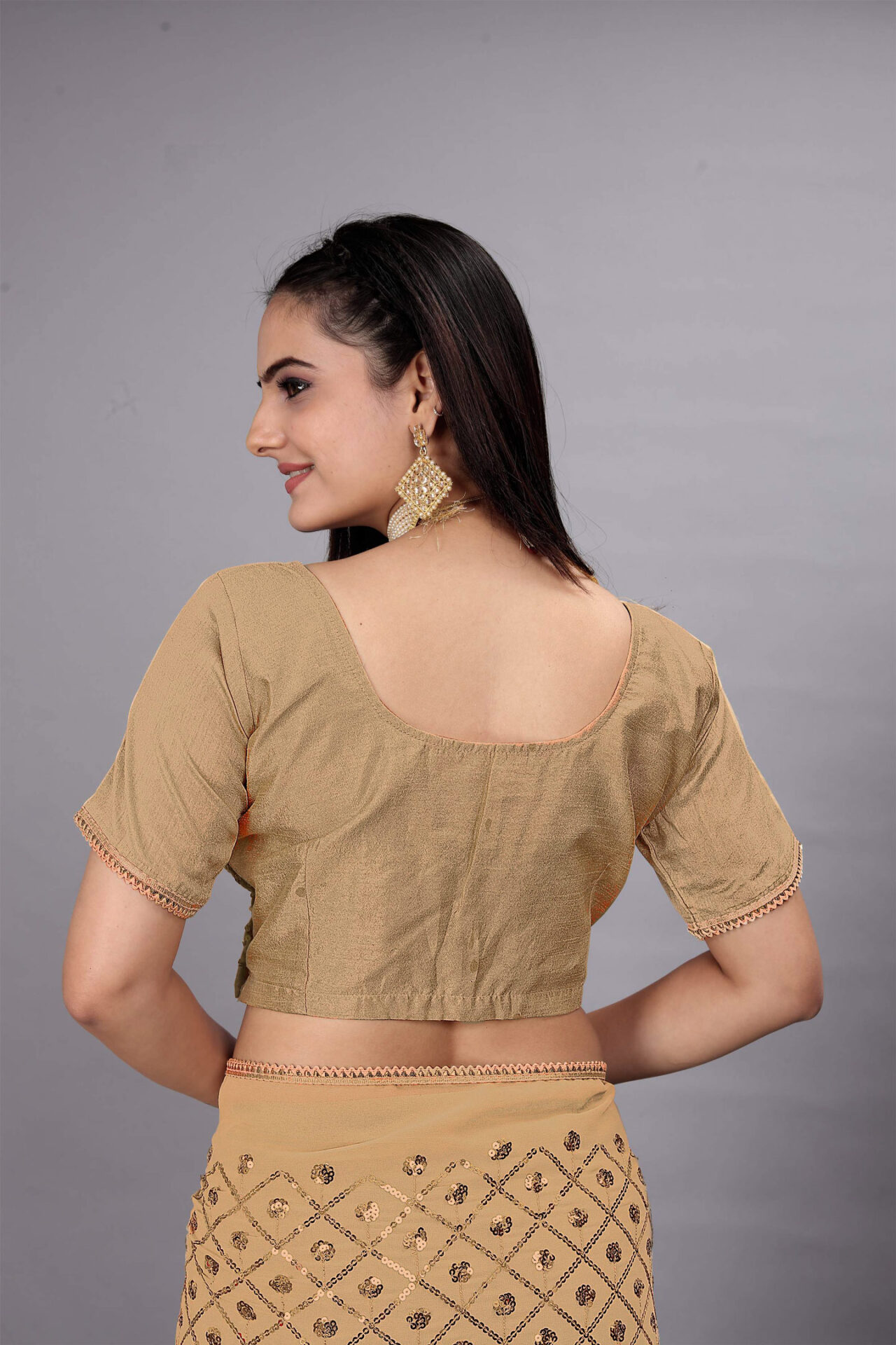 The Gold Party Wear Sequin Saree offers endless styling possibilities, making it a versatile addition to your wardrobe. Dress it up with statement