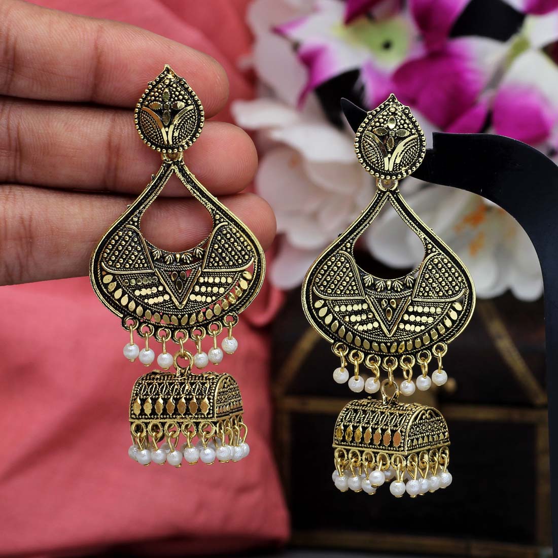 Golden Oxidised Earrings
