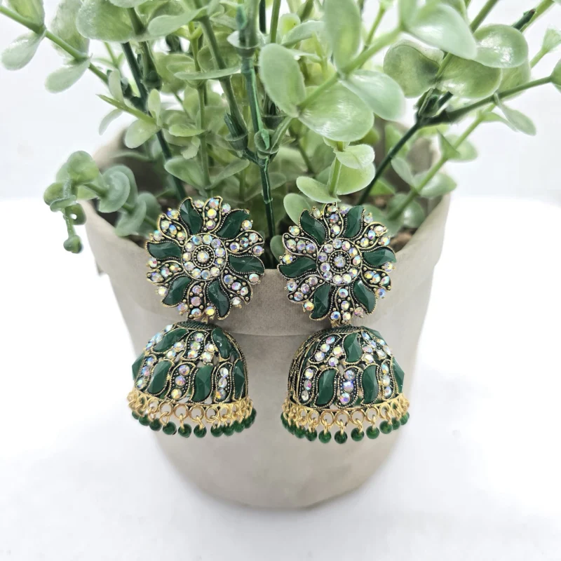 Green Beads Earrings Woman, especially jhumka-style, hold deep cultural roots in Indian heritage. These earrings symbolize prosperity, fertility, and harmony. In many communities, green jewelry is worn during significant festivals to invite good fortune. Traditionally, the color green represents nature, vitality, and auspicious beginnings, making these earrings timeless accessories for every woman.