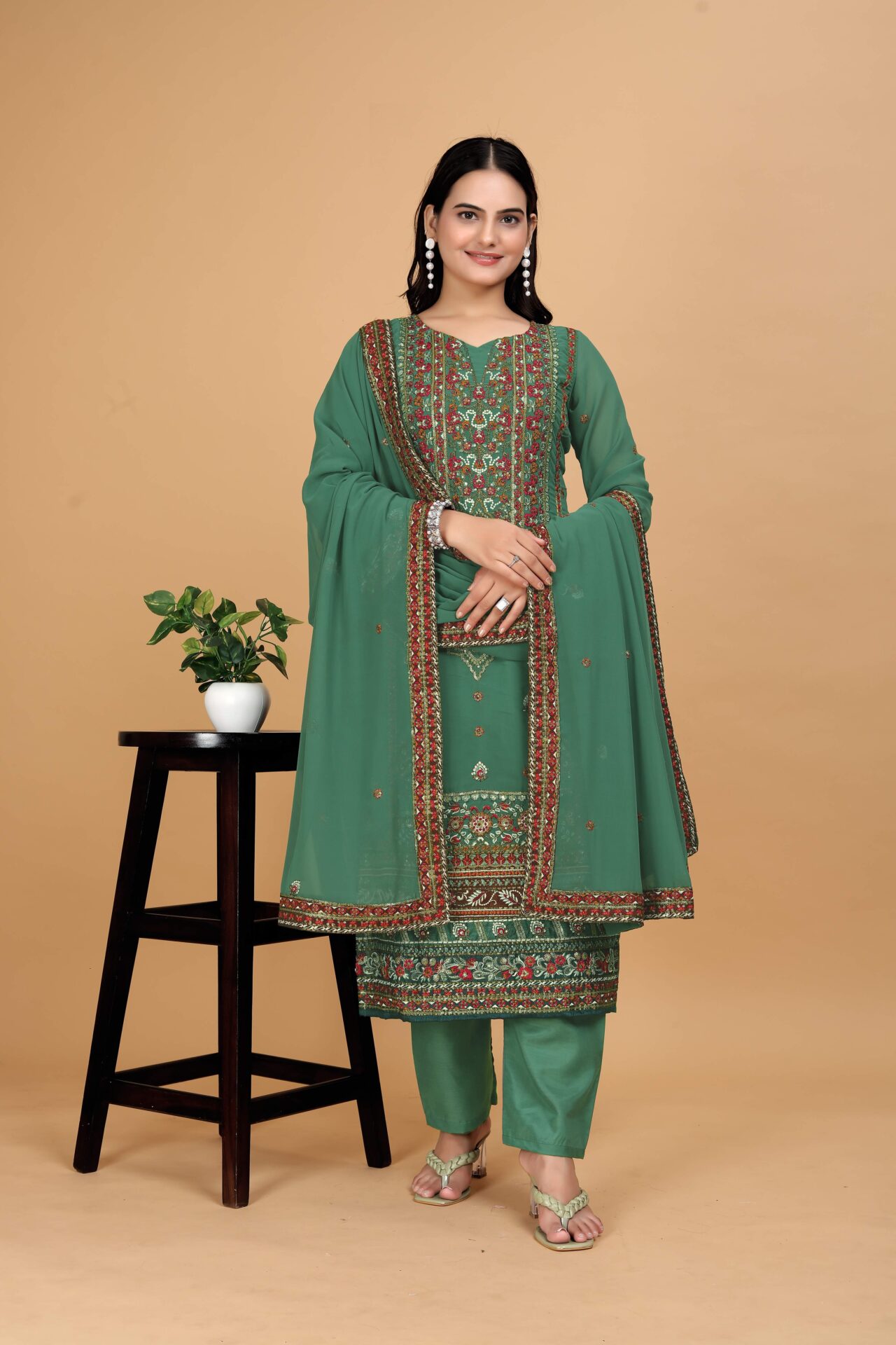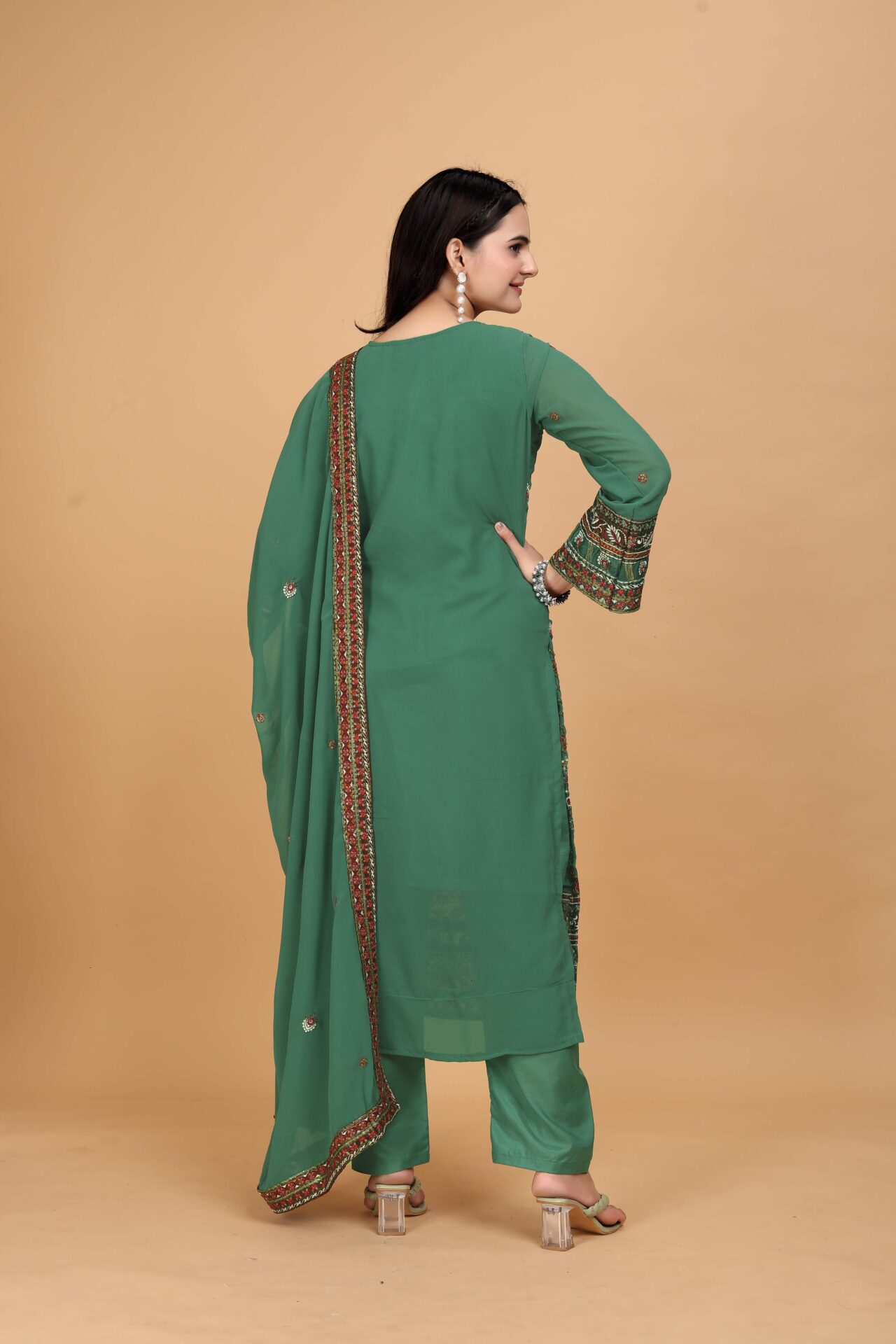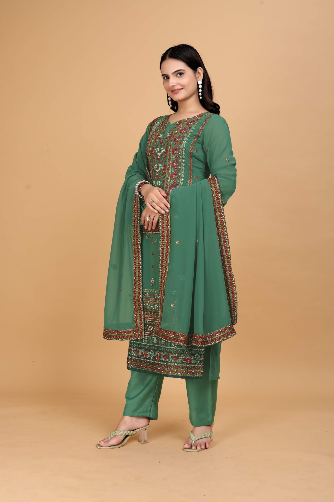Elegance Redefined: The Green Embroidered Georgette Suit for Women