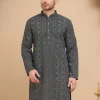Chikankari embroidery reflects centuries of refined Indian craftsmanship. Originating from Lucknow, this art symbolizes elegance, patience, and heritage. Over time, it became a symbol of understated luxury for men. Moreover, the grey shade adds contemporary balance to traditional roots. Therefore, this kurta bridges culture and modern masculinity effortlessly.