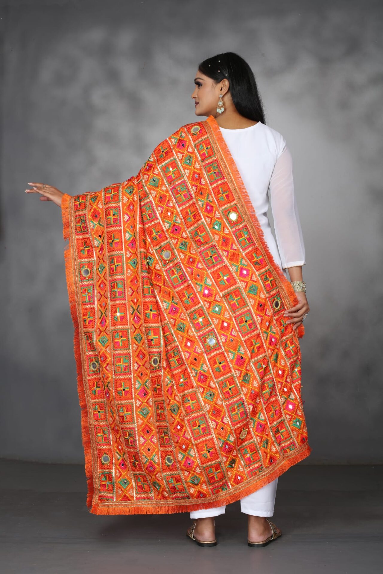 - Introducing the Heavy Orange Phulkari Dupatta, a masterpiece of ethnic craftsmanship that pays homage to age-old traditions.