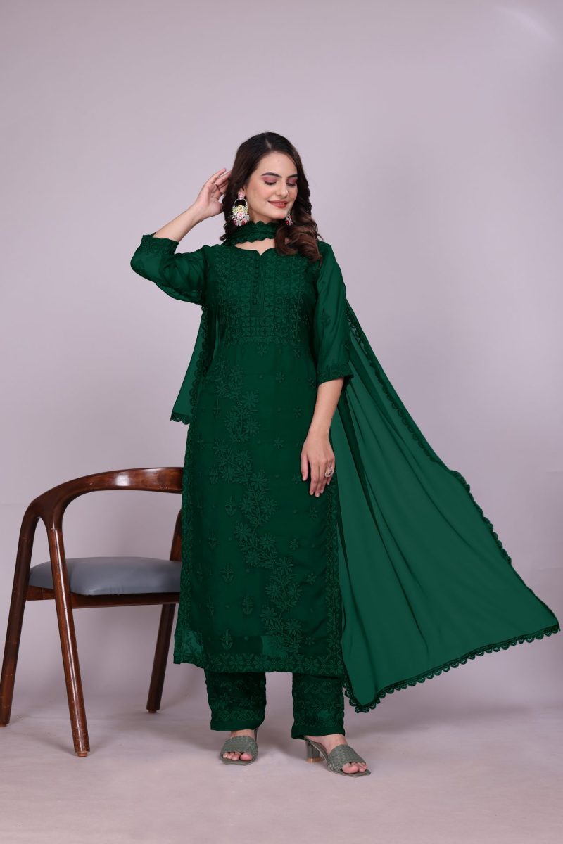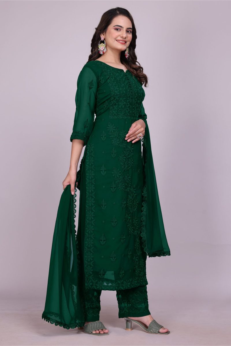 Timeless Luckhnowi Embroidery Green Suit – Elegance Delivered to Your Door in Australia