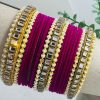Magenta Gold Stone Velvet Bangles