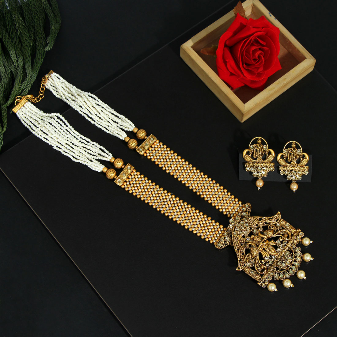 Matte Gold Long Necklace Set