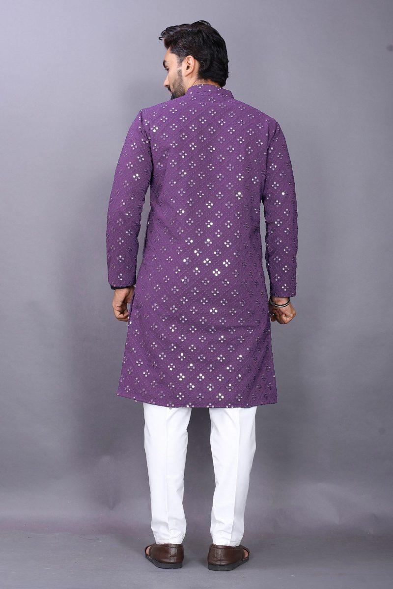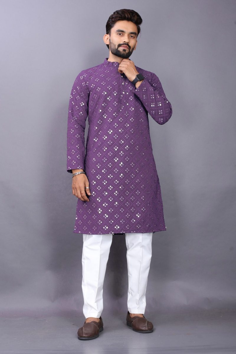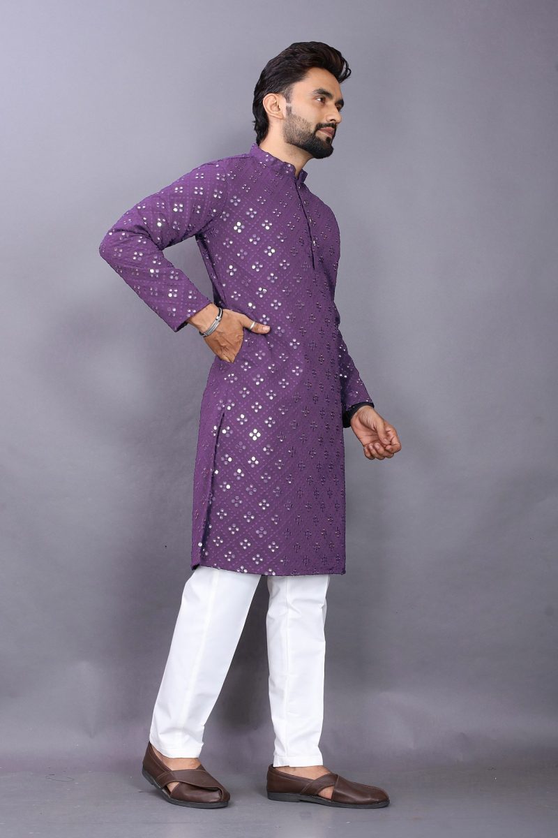 Men Purple Mirror Kurta Pajama – Regal Style with Modern Elegance