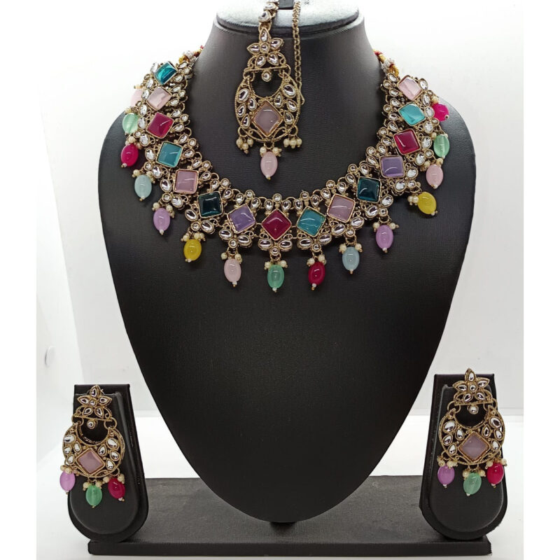 Multi Color Stone Necklace With Earrings and MaangTikkaAvailability: In Stock