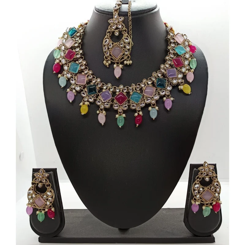 Multi Color Stone Necklace With Earrings and MaangTikka