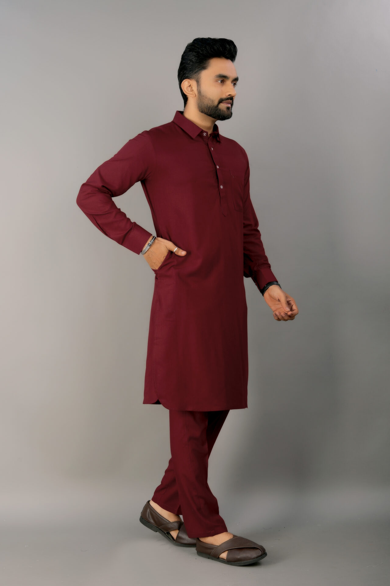 Maroon High-Quality Cotton Punjabi Kurta Pajama