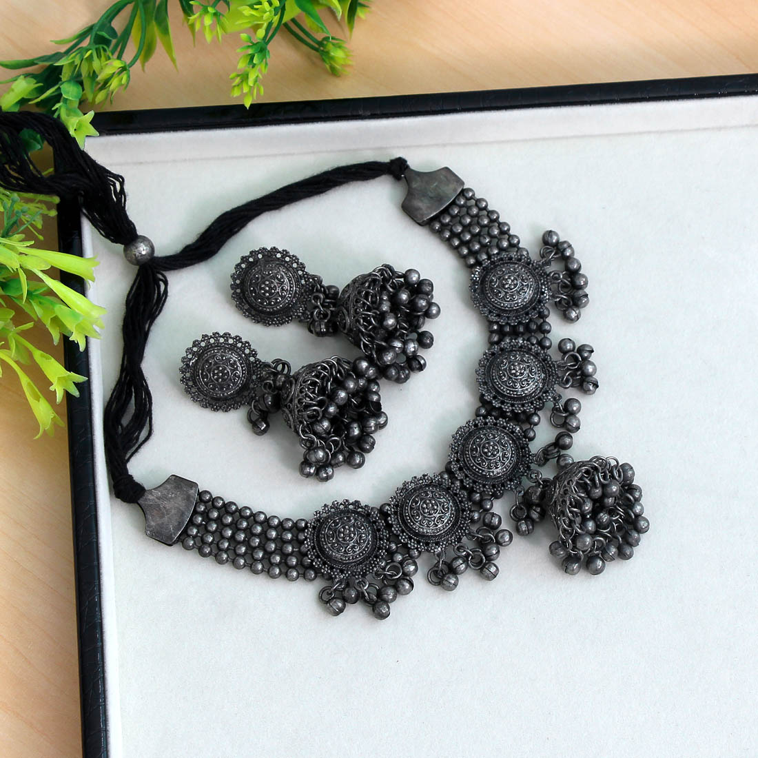 Oxidised Necklace With EarringsAvailability: Out Stock