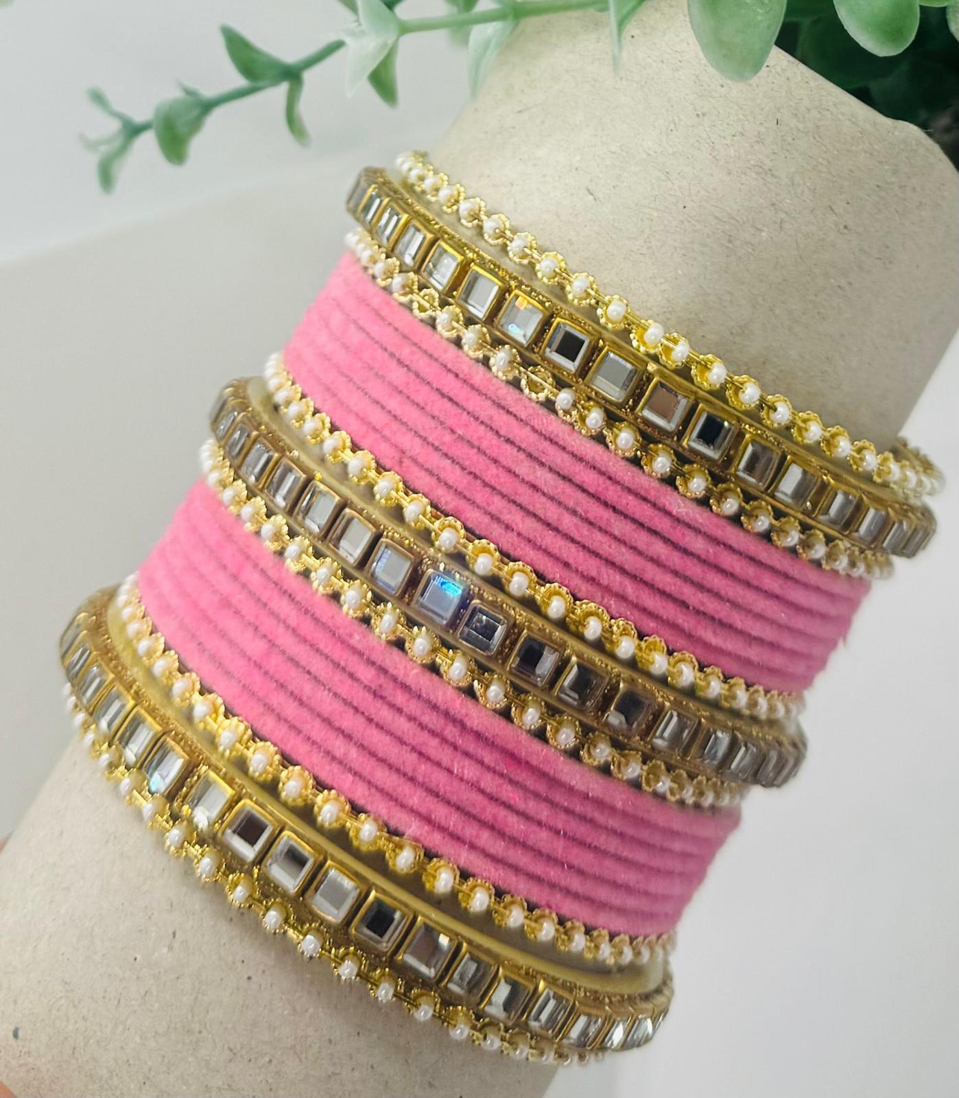 Pink Gold Stone Velvet Bangles – Radiance with Tradition