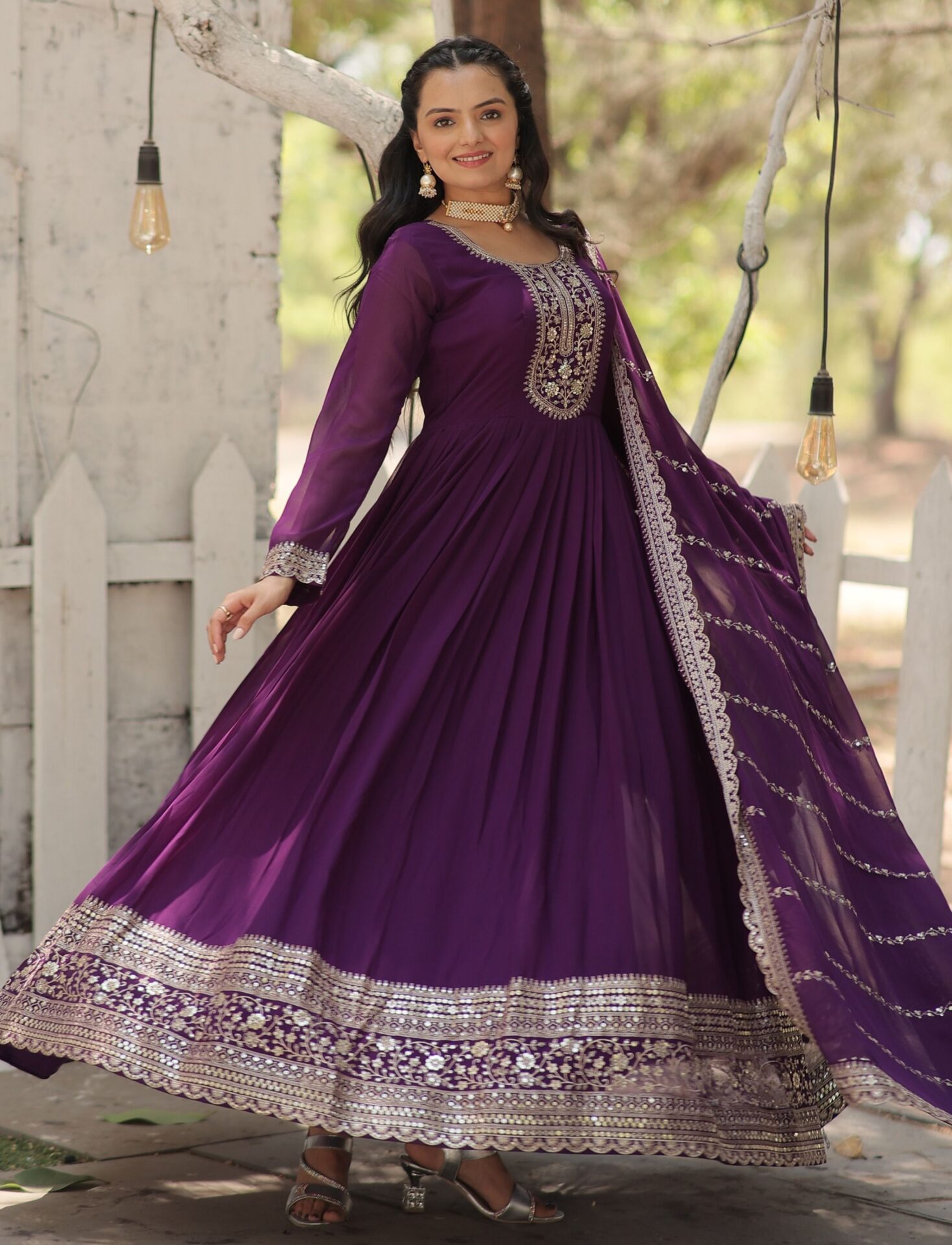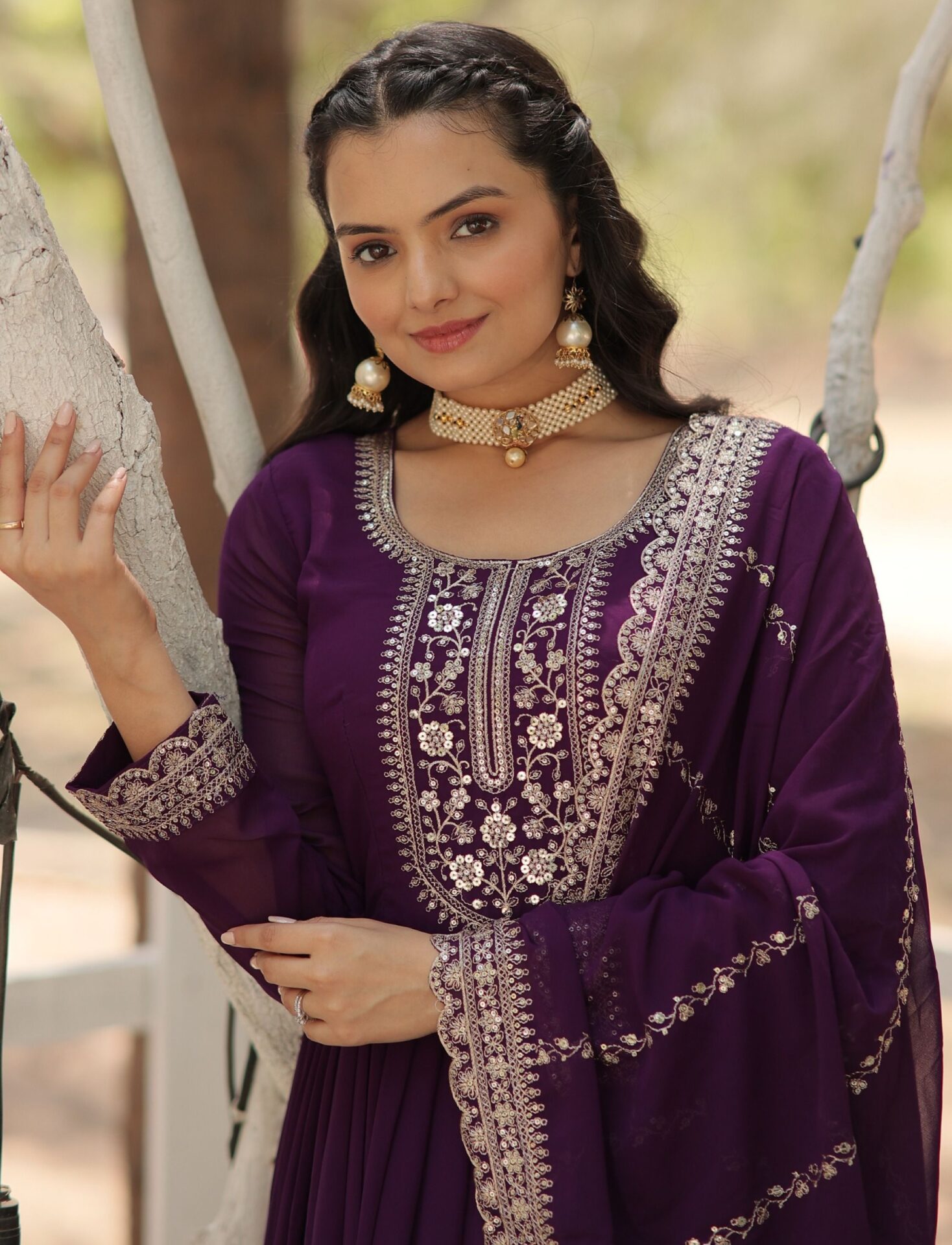 - The Purple Embroidered Anarkali Kurti embodies traditional Indian craftsmanship.