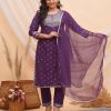 Purple Silver Embroidered Kurti Set