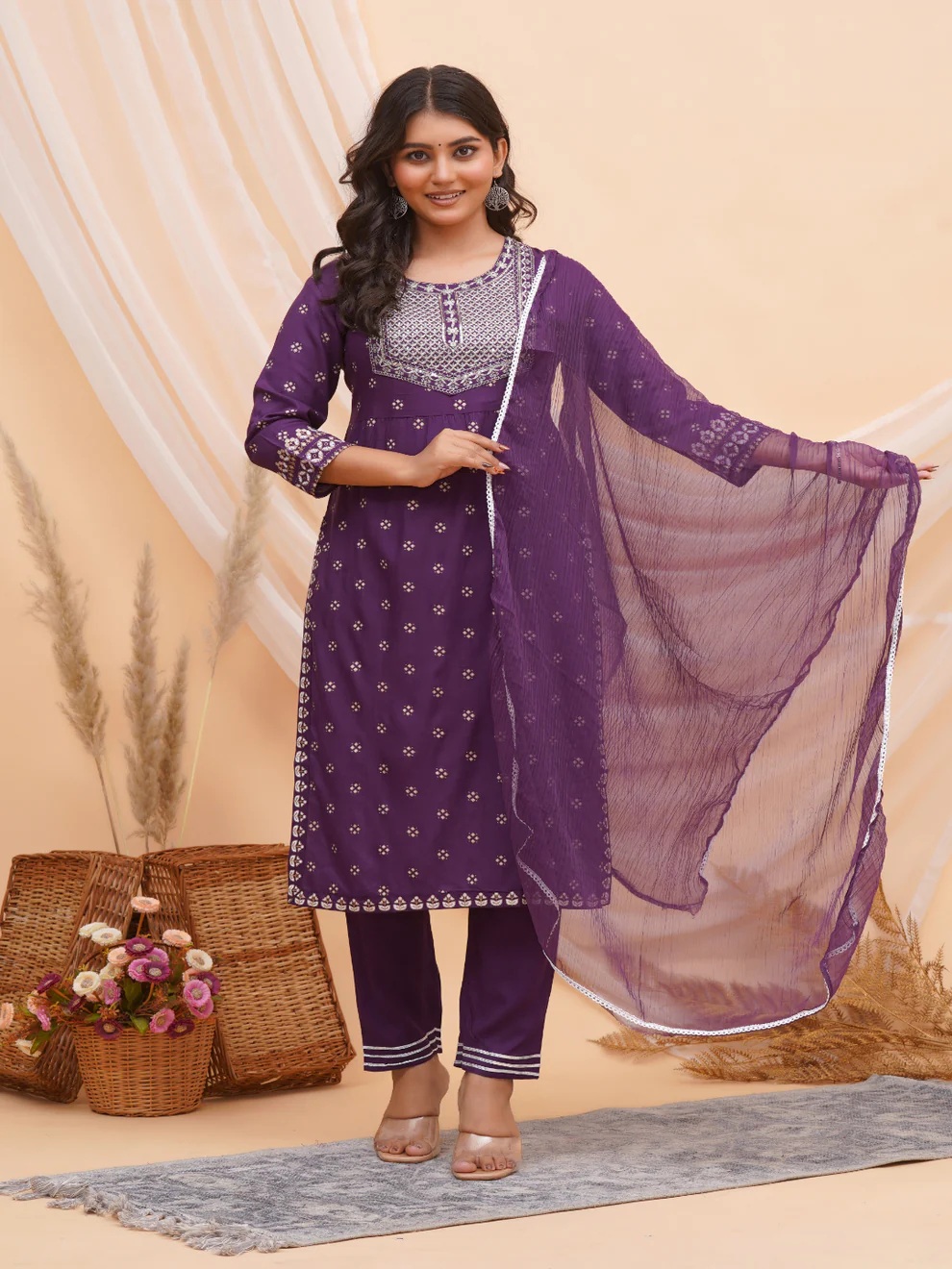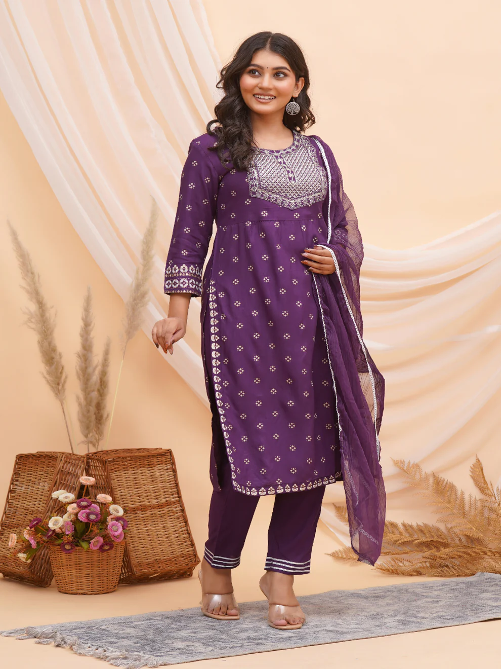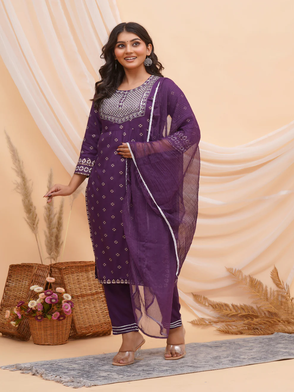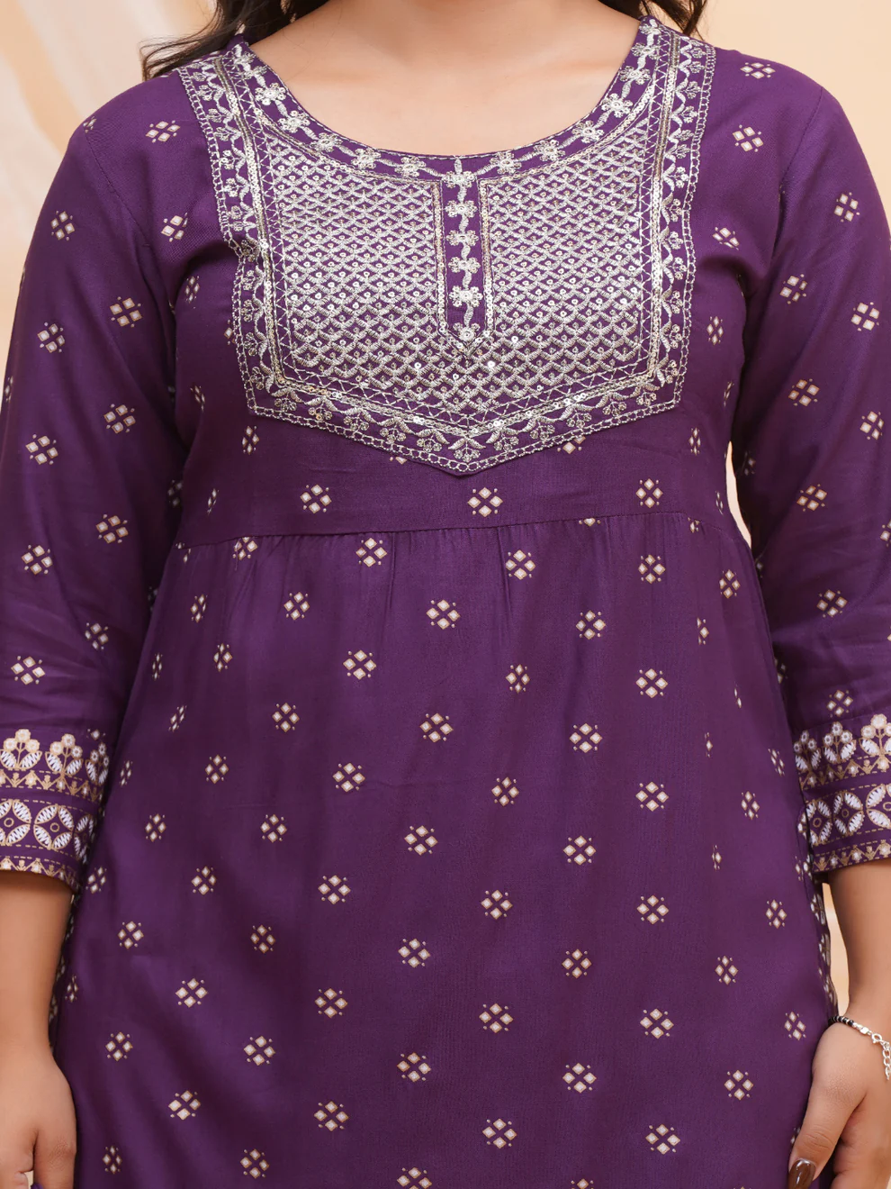 Purple Silver Embroidered Kurti Set – A Modern Blend of Tradition and Comfort