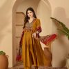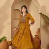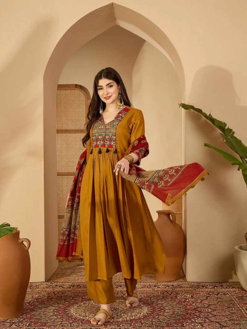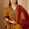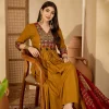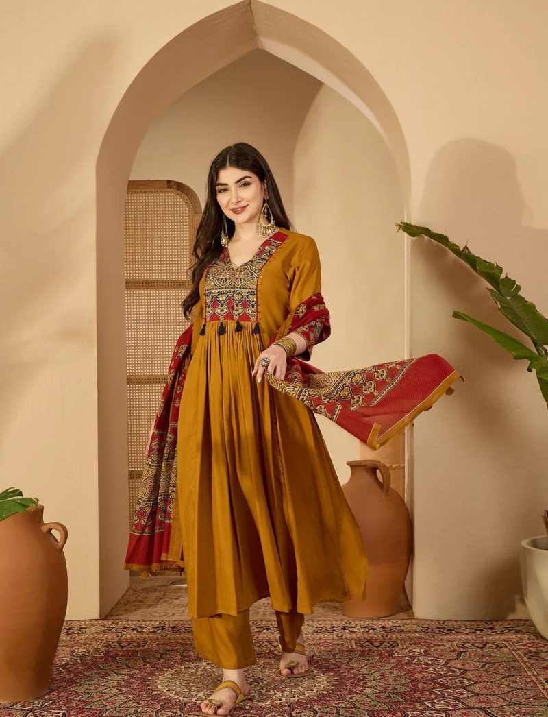 Rayon Mustard Printed Embroidered Suit