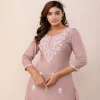 The Rayon Mauve Embroidered Short Top delivers relaxed elegance with modern charm. Instantly, the soothing mauve tone feels graceful and refreshing. Moreover, the silhouette flatters effortlessly across body types. As a result, it becomes a versatile wardrobe essential.