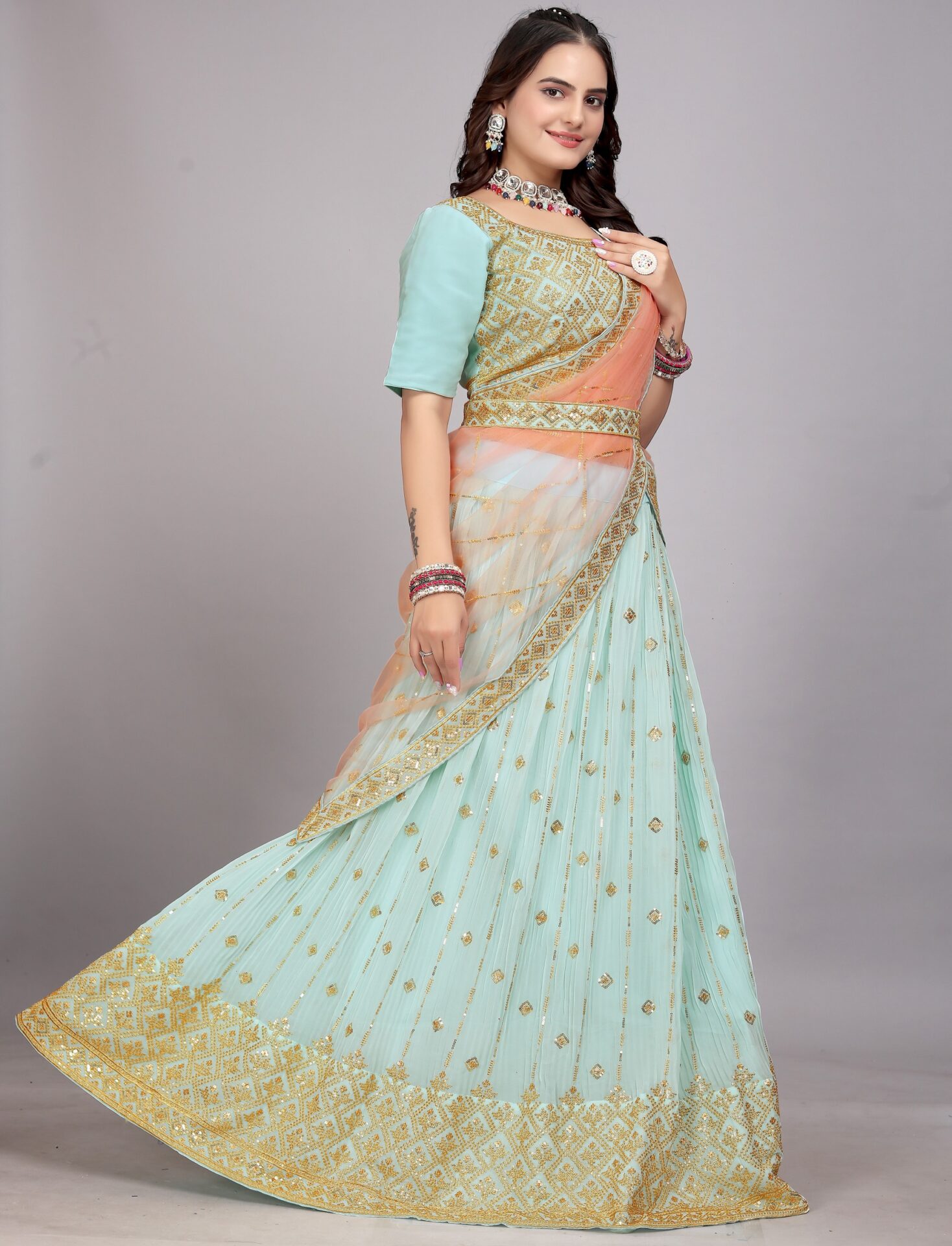 Sky Blue Georgette Lehenga: A Stunning Blend of Tradition and Glamour