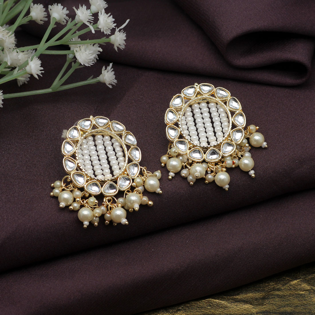 White Kundan Earrings