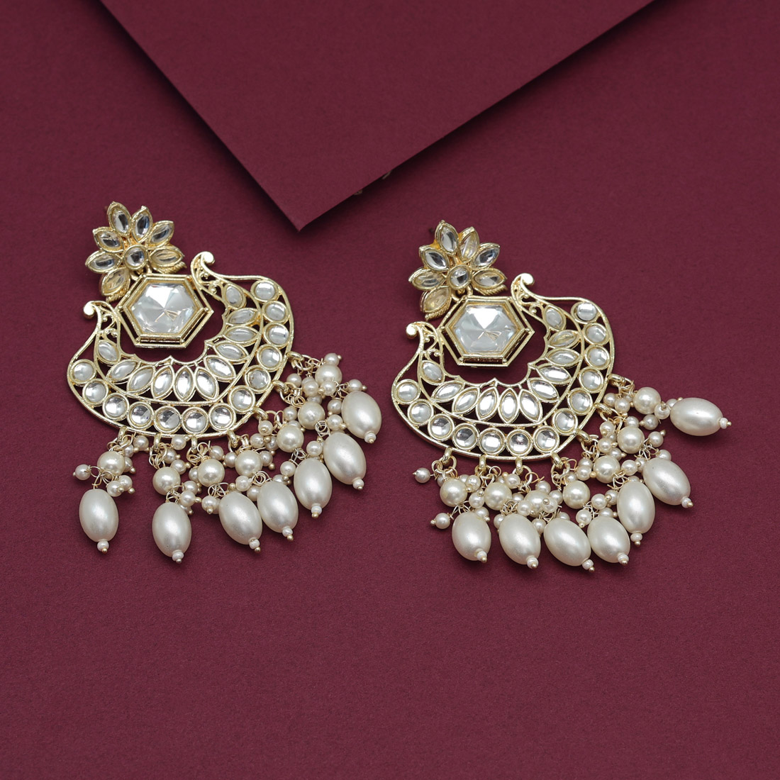 White Kundan and Pearl EarringsAvailability: Out Stock