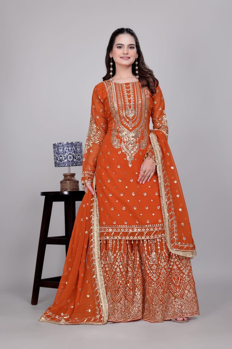 Rust Orange Sharara Suit