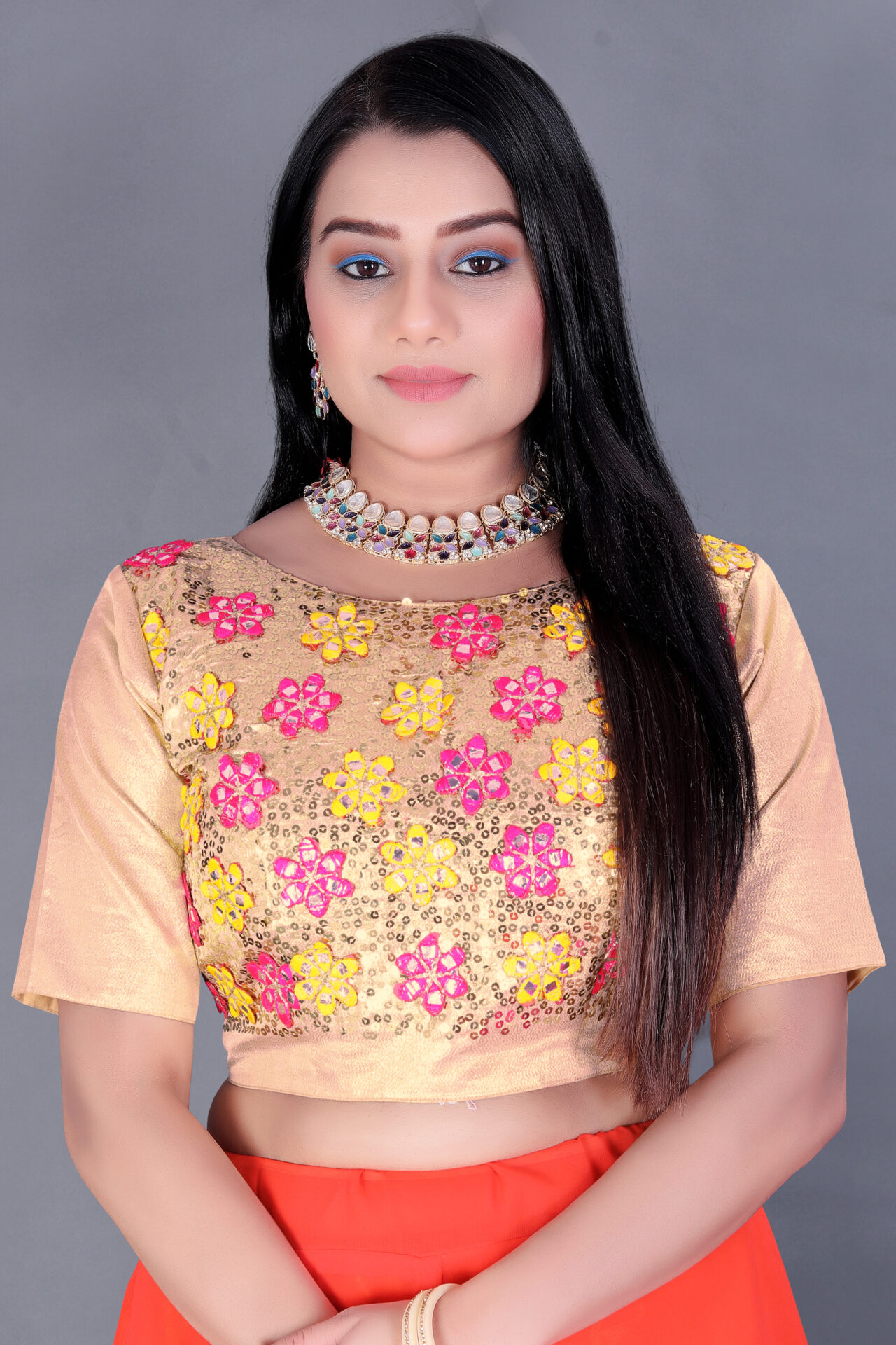 - Topwear Fabric: Banarasi Gotta, showcasing intricate craftsmanship and a regal finish.