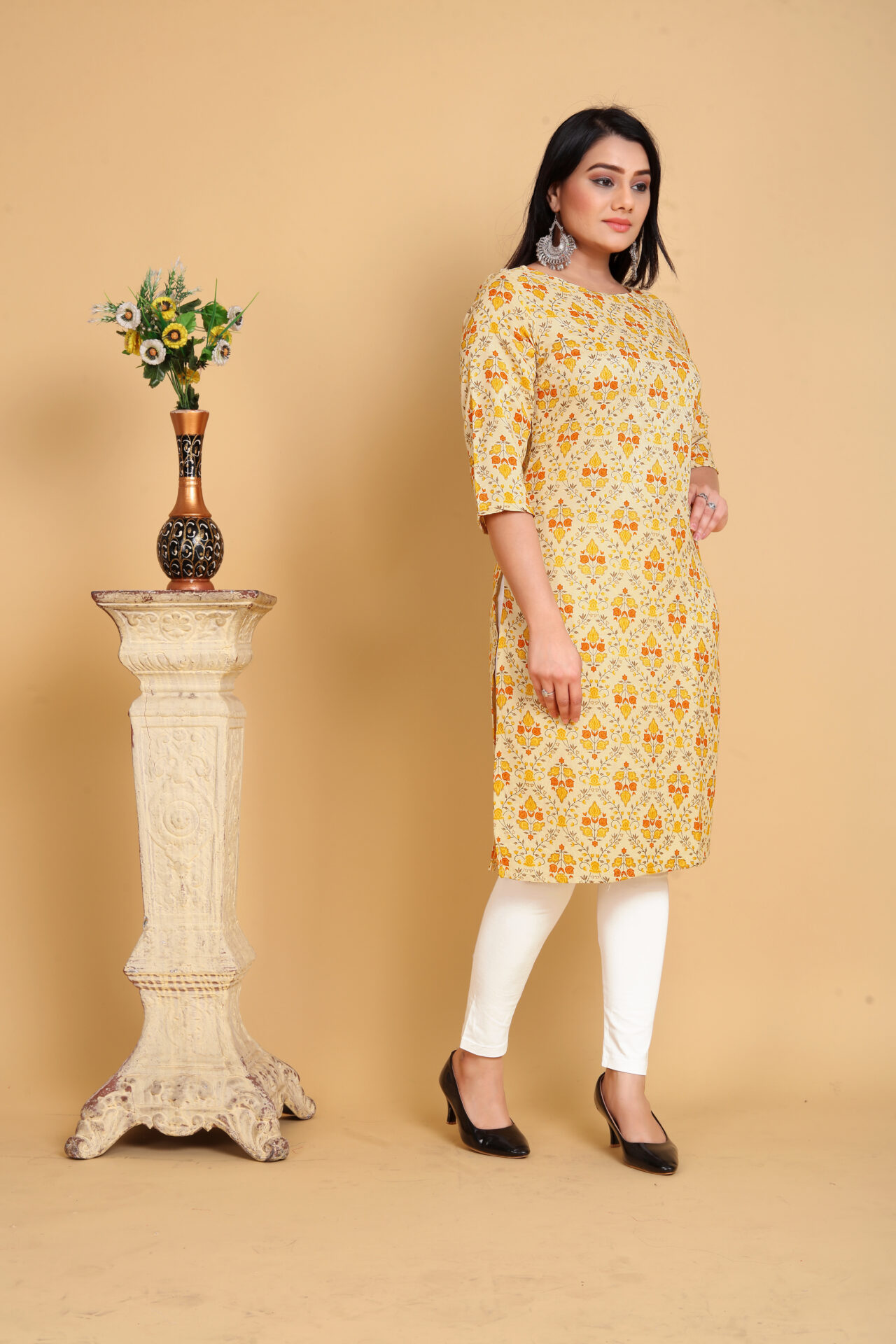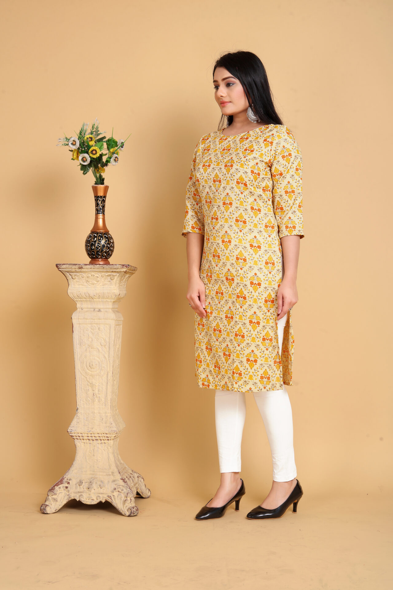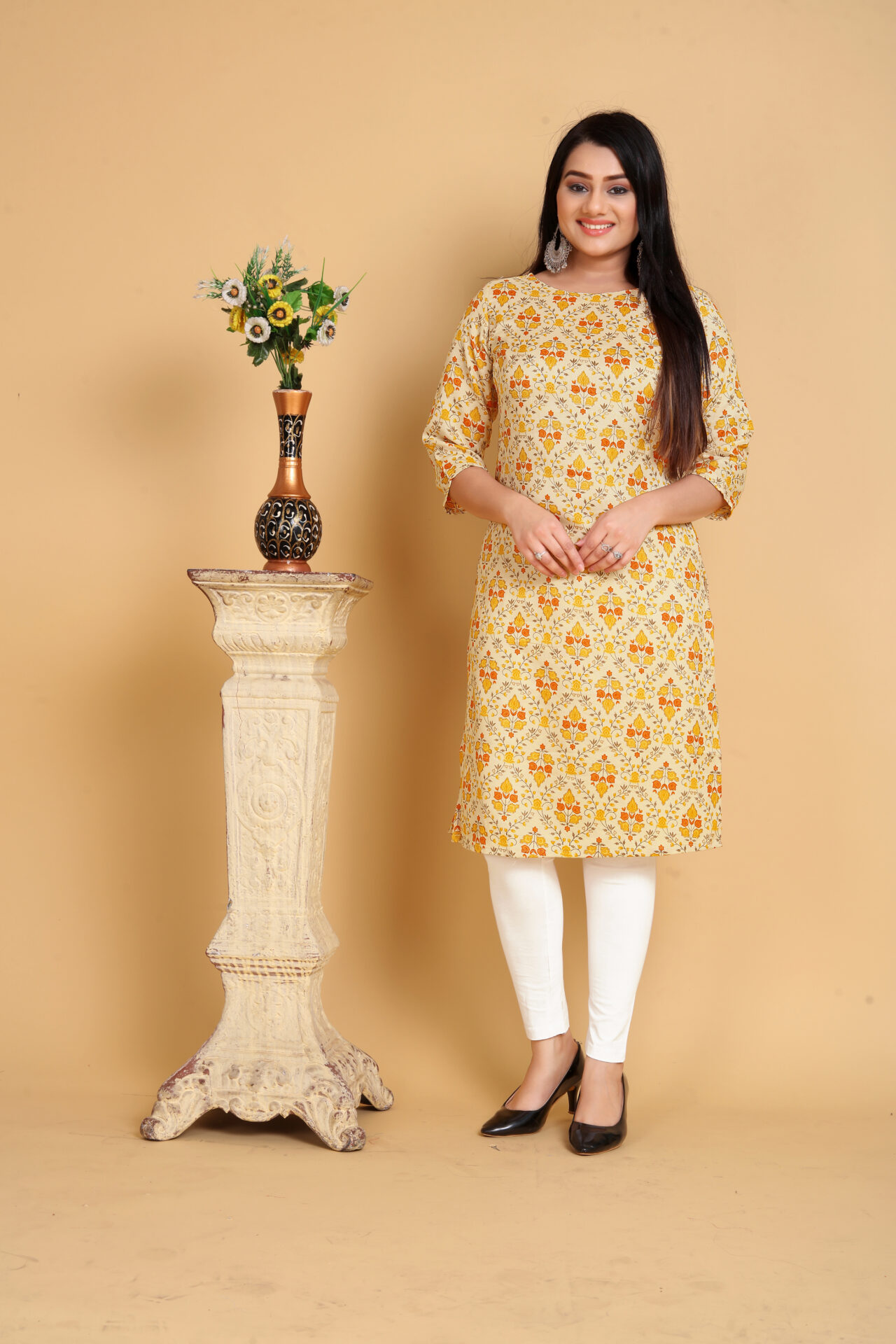 Yellow Printed Rayon Kurti: Effortless Elegance for Everyday Style