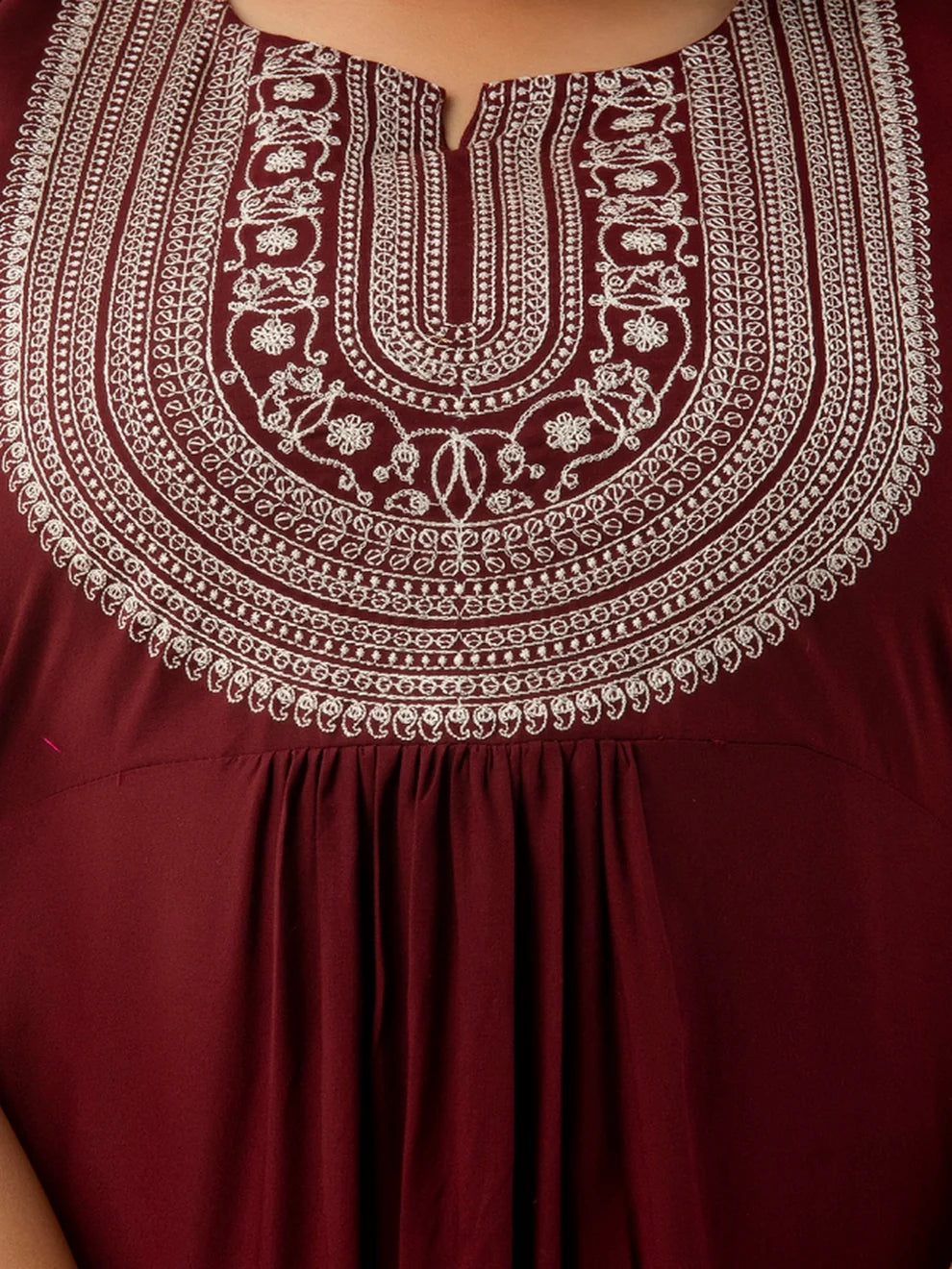 Maroon Embroidered Straight Kurti – A Perfect Blend of Tradition and Modern Grace