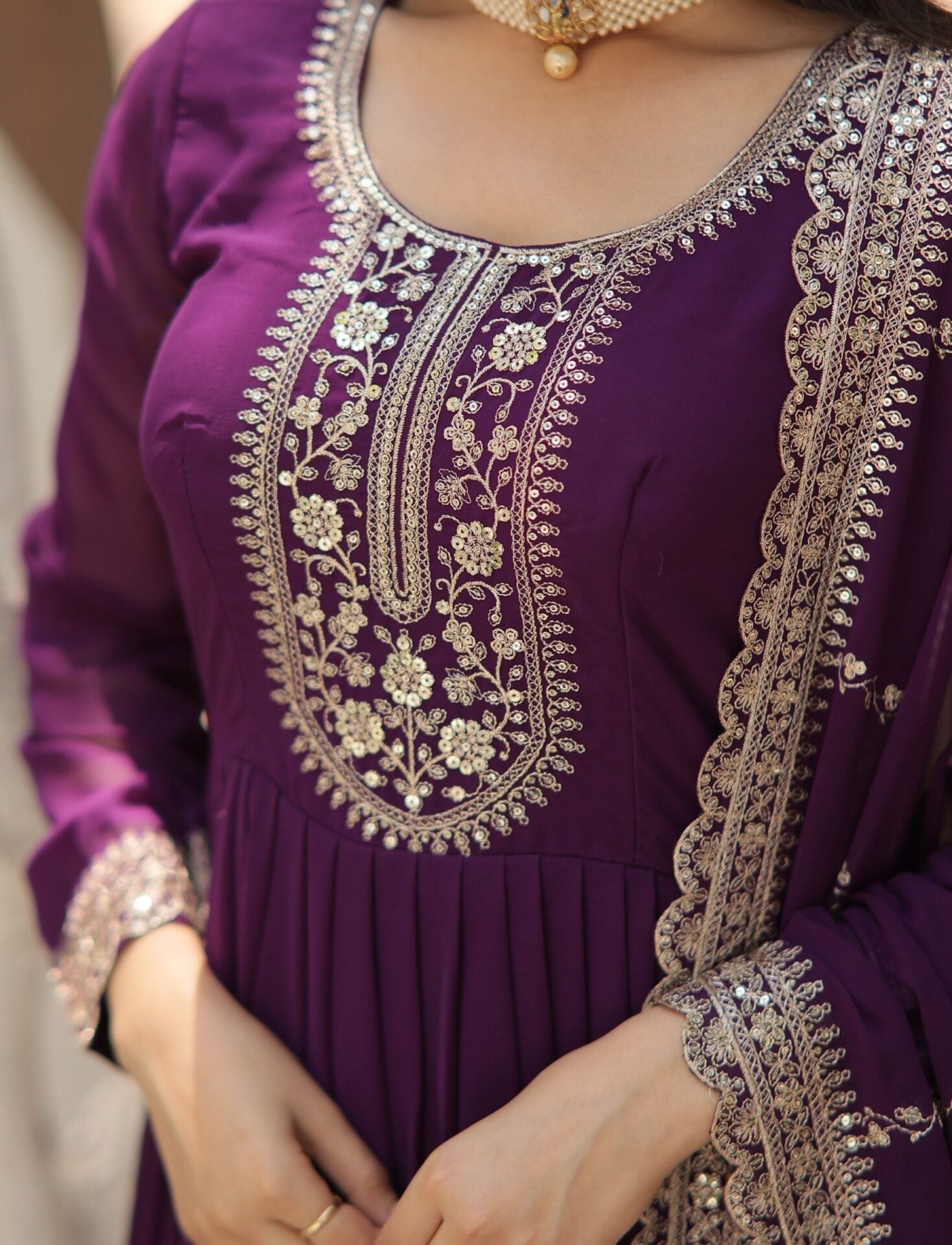 - The Purple Embroidered Anarkali Kurti embodies traditional Indian craftsmanship.